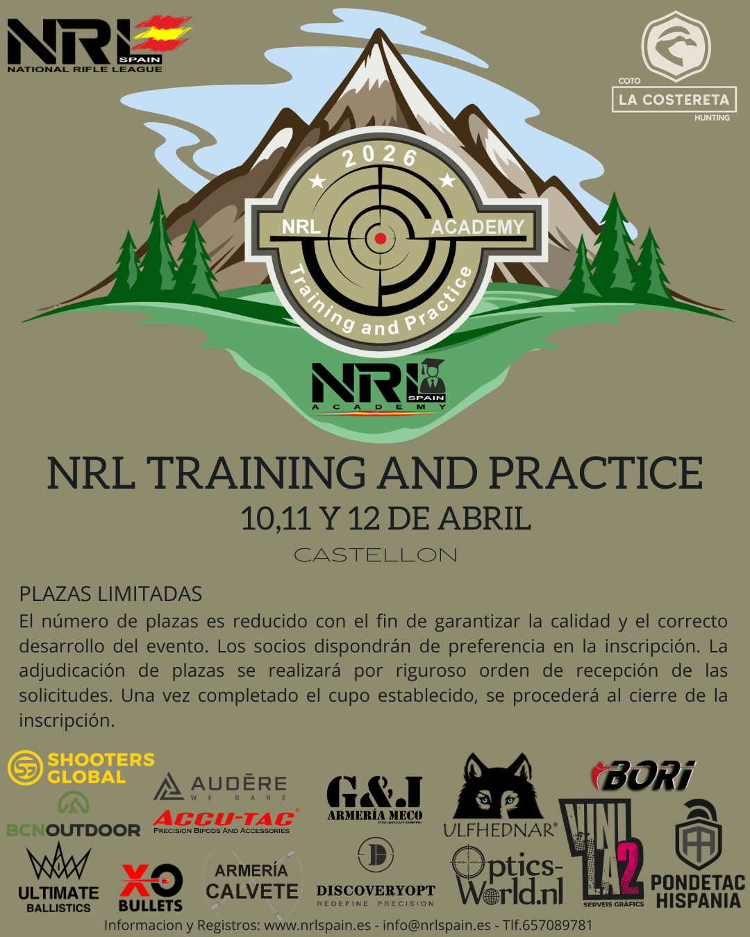 Catí Catí, CatíNRL Academy Training and Practice 10, 11 Y 12 DE ABRIL DE 2026 La Costereta, Catí, Castellon Seminario de tiro a media y larga distancia (Distancias desde 200m hasta 700m) Viernes 10 Recepcion 17.00 horas Masia. 21.30 Cena en la Masia. Sabado 11 Practicas de tiro 8.00 Desayuno en la Masia. 9.00 Practicas […]